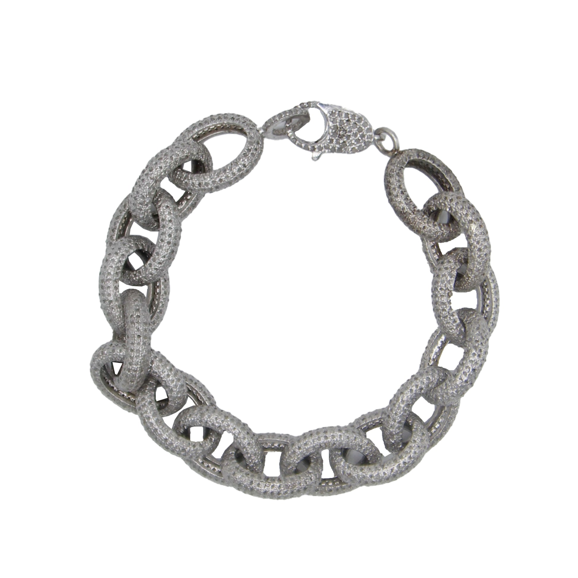 Bold architecture, liquid light. The Supreme Large Link Pavé Bracelet turns classic chain into sculpture—substantial sterling-silver links fully wrapped in hand-set pavé diamonds for a 360° glow. Finished with a pavé-clasp for seamless sparkle, it’s the ultimate power piece: luxe enough to command a room, streamlined enough to wear every day. A Lissa Gail mainstay and her go-to wrist candy—stack it or let it lead. Introducing the Supreme Large Pave Bracelet: Built like a classic. Finished like a jewel. Worn like a signature.. Weight. Sparkle. Authority.