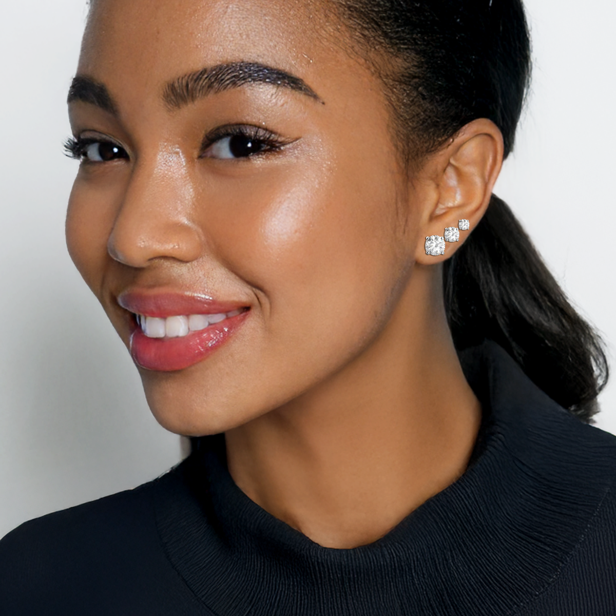 Pure sparkle, pared back. Each 6mm Swarovski® crystal is set in a three-prong martini mount to invite maximum light—clean, brilliant, and noticeably bright. The sterling silver setting sits low and close to the lobe for a modern, minimal profile that works from coffee to curtain call. Quietly luxe. Unmistakably luminous.
